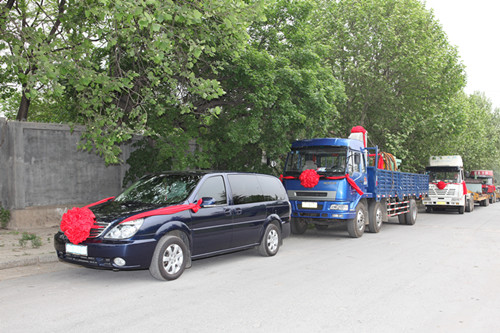 随后,在礼炮声中,装载着大型设备的车队,驶向大连宝原新厂区。