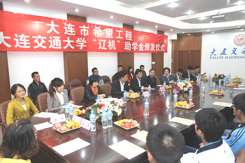 2012年大连交通大学“辽机助学金”主要用于扶持25名学习成绩优秀并且家庭贫困的2012级新生,帮助他们解决学习生活的资金困难。会议还邀请了两名曾获得“辽机助学金”的往届学生代表汇报了在校的生活和学习情况。