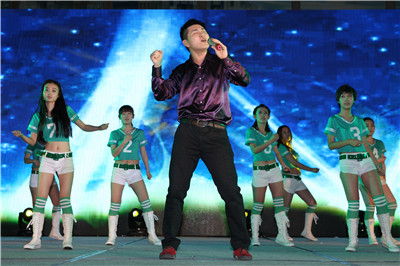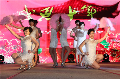 图为宝原公司员工的歌舞表演